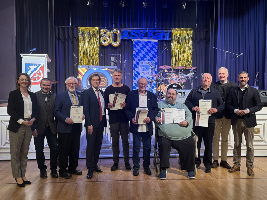 Der ASV Kahl 1946 e.V. feierte am 21. Februar im großen Saal der Festhalle Kahl sein 80‑jähriges Bestehen.